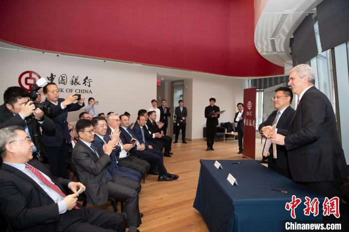 當(dāng)?shù)貢r(shí)間4月10日,以“經(jīng)濟(jì)合作與文化傳承的雅致之約”為主題的“甘肅雅集”推介活動(dòng)在美國(guó)紐約曼哈頓舉行。圖為甘肅省人民對(duì)外友好協(xié)會(huì)同美中綠色基金會(huì)簽署了諒解備忘錄。 中新社記者 廖攀 攝