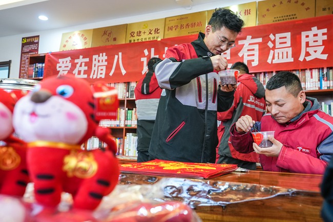 人民網北京1月8日(池夢蕊 閆兆松)1月7日,盡管天氣非常寒冷,但是在位于順義區(qū)勝利街道建北一社區(qū)的“小哥驛站”里卻是歡聲笑語、暖意洋洋。原來,由順義區(qū)勝利街道非公企業(yè)聯合會黨支部、建北一社區(qū)黨總支聯合舉辦的“愛在臘八,讓城市更有溫度”主題活動正在這里暖心舉行。一碗碗熱氣騰騰、香甜四溢的臘八粥為正在這里臨時休息的快遞小哥送去濃濃的關愛。勝利街道工委副書記、辦事處主任張家豐、工委副書記薛靜、組織部長石曉靜、建北一社區(qū)黨總支書記顧濤以及夏禾拉面、更讀書社、順批醫(yī)藥等愛心單位代表參與了本次公益活動。