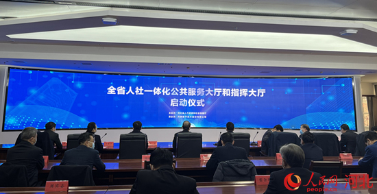 河北省人社一體化公共服務(wù)大廳和指揮大廳啟動(dòng)儀式現(xiàn)場(chǎng)。 人民網(wǎng) 趙明妍攝