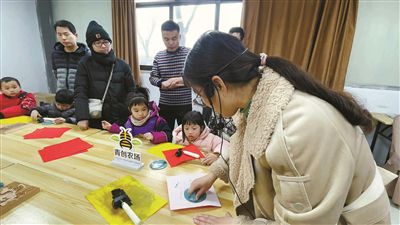 “今天玩得很開(kāi)心,最有意思的是和媽媽一起拓印年畫!”一名小朋友興奮地說(shuō)。