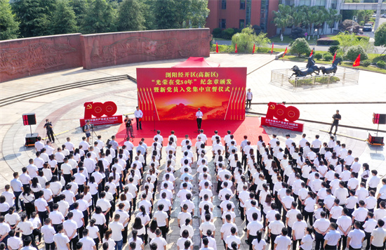 園區(qū)舉行“光榮在黨50年”紀念章頒發(fā)暨新黨員入黨集中宣誓活動。受訪單位供圖