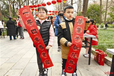 原標(biāo)題:小小書法家人民公園送春聯(lián)