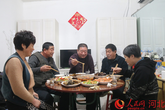 人民網(wǎng)石家莊2月1日電 (付兆颯)“喂!鳳潮,一會兒叫著會平過來,咱們喝兩盅!”放下電話,河北省唐山市樂亭縣馬頭營鎮(zhèn)南趙莊子村黨支部書記李軍對忙著包餃子的老伴兒說,“一會兒多炒倆菜,鳳潮跟會平在這兒吃年夜飯!”