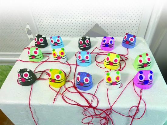 記者來到吳為民的工作室里,一提到“皮老虎”,吳為民滔滔不絕?!啊だ匣ⅰ怯媚嗯吣蟪煽蓯鄣男±匣⒌臉幼?,通過一只手握住它,另一只手滑動(dòng)它身上的紅線,就會(huì)發(fā)出各種動(dòng)物的叫聲。我做的這個(gè)‘皮老虎’,它能發(fā)出許多種動(dòng)物的叫聲。”吳為民一邊說著一邊為記者演示,“隨著滑動(dòng)的頻率的變化,它能發(fā)出各種惟妙惟肖的聲音,有貓叫、青蛙的叫聲、老母雞的叫聲等等?!?/p>