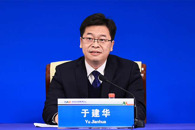 北京市生態(tài)環(huán)境局黨組成員、副局長、新聞發(fā)言人于建華介紹北京生態(tài)文明建設(shè)工作的整體情況。2022北京新聞中心供圖