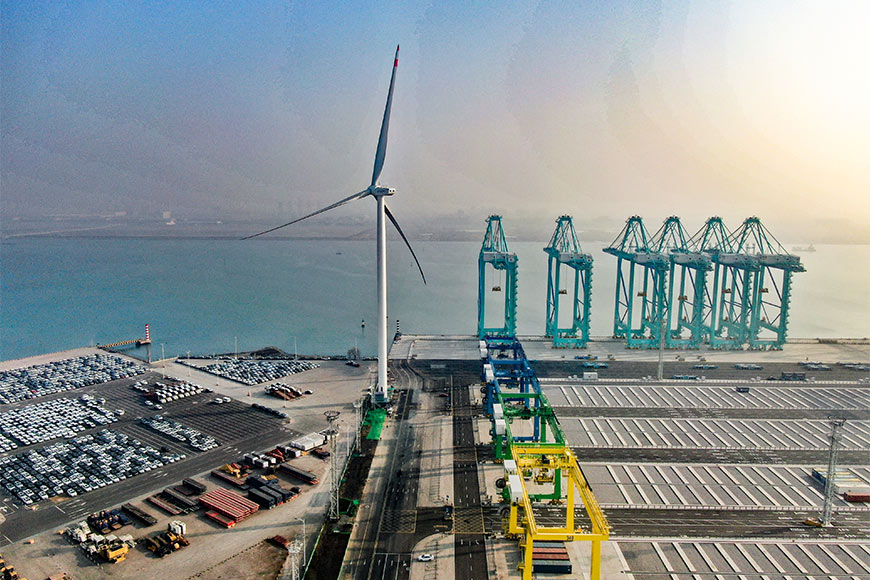 全球首個(gè)“智慧零碳”碼頭智慧綠色能源系統(tǒng)順利并網(wǎng)發(fā)電。樂(lè)坤攝