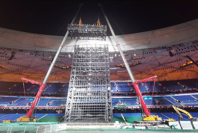矗立在“鳥巢”東側(cè)跑道中心區(qū)域的巨幅屏幕被稱為“冰瀑”,由鋼結(jié)構和LED顯示屏組成,在開幕式上呈現(xiàn)了“黃河之水天上來”的震撼效果。拆除大屏幕主體鋼結(jié)構成為“鳥巢”轉(zhuǎn)場的關鍵。