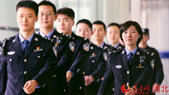 人民網(wǎng)石家莊3月8日電 “準(zhǔn)備出發(fā)……”一連串清脆響亮的聲音發(fā)出,一排手持警棍和盾牌,全身武裝的公安干警,行動(dòng)迅速,壓人氣息。