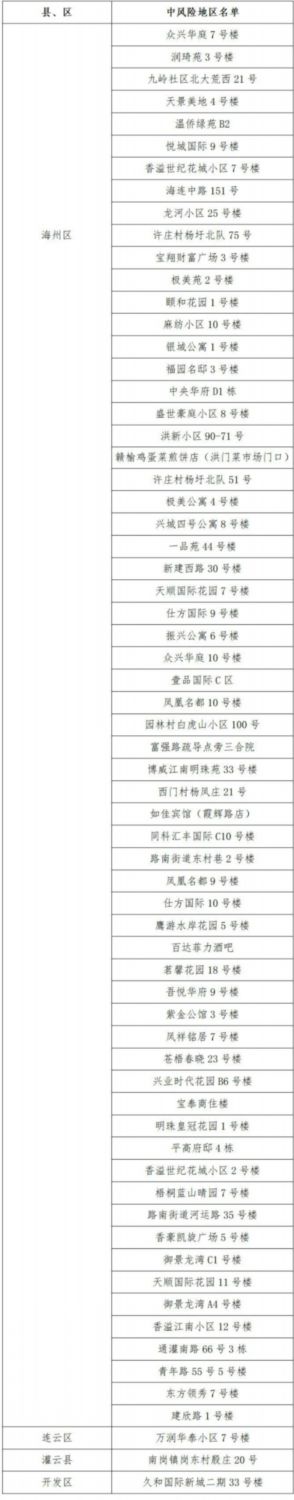連云港市66個中風險地區(qū)詳細名單(2022年3月11日)