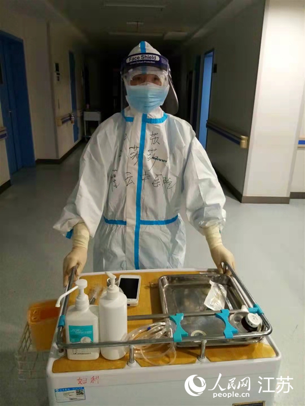 今年3月5日,連云港市突發(fā)新冠肺炎疫情后,被借調(diào)在灌云縣黨史學(xué)習(xí)教育實(shí)踐組的她,在加快臺賬整理進(jìn)度的同時,時刻關(guān)注疫情的進(jìn)展情況。她在縣委宣傳部機(jī)關(guān)工作群里不時以自己的專業(yè)知識引導(dǎo)大家如何佩戴口罩、“七步洗手法”等防護(hù)方法。隨著疫情防控形勢的嚴(yán)峻,3月8日,她果斷向部領(lǐng)導(dǎo)、縣突發(fā)新冠肺炎疫情應(yīng)急處置指揮部和“娘家”單位提出了再赴“疫線”的申請。