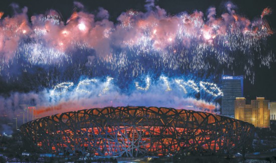 “BEIJING”“北京2022”綻放鳥(niǎo)巢上空