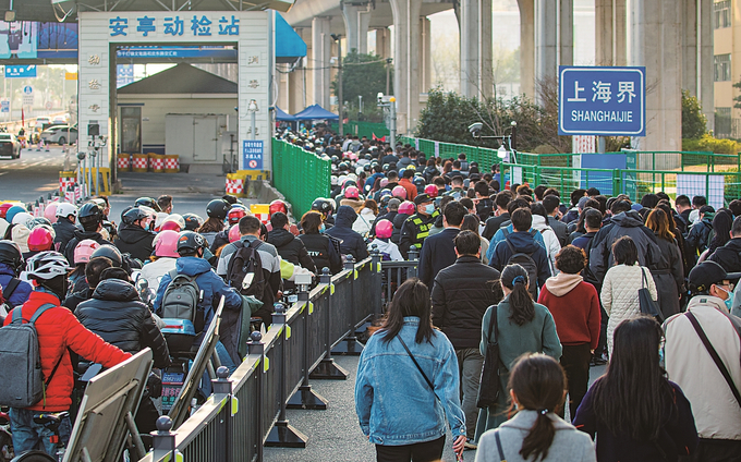 每當工作日的早晨,在昆山蘇滬交界處,馬路上擠滿了跨省通勤的人。