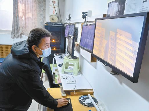在物業(yè)公司的中控室里,記者看到墻上安裝著十幾個(gè)顯示屏。通過顯示屏可以清晰地看到每棟樓體外邊的情況。工作人員操控監(jiān)控探頭的角度,可以看到整棟樓的每一個(gè)角落。