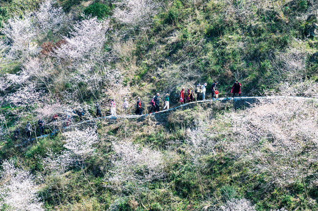 這些天,金華市磐安縣安文街道東川村山坡上,野櫻花競相綻放,吸引各地游客前來踏青賞花,帶動當(dāng)?shù)剜l(xiāng)村經(jīng)濟(jì)發(fā)展。(胡肖飛)