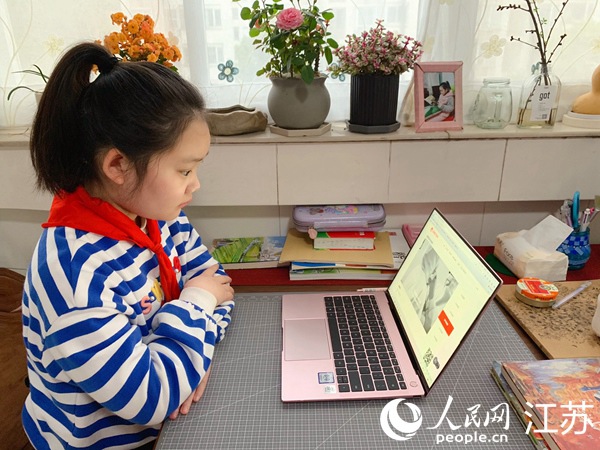 南京市朝天宮民族小學(xué)學(xué)生劉祎一參與線(xiàn)上學(xué)習(xí)。校方供圖