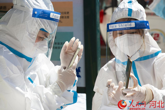 張振是滄州市人民醫(yī)院胃腸外科的護(hù)士。去年,他曾到藁城支援核酸采集工作。這一次,接到緊急任務(wù)通知后,有核酸采集經(jīng)驗(yàn)的他再次與同事奔赴核酸采集點(diǎn)?!扒皫滋煳覀?cè)诤游鞅苯稚鐓^(qū)采集核酸,每人每天大概要采600余人的樣本。”電話里,張振的聲音略微沙啞。