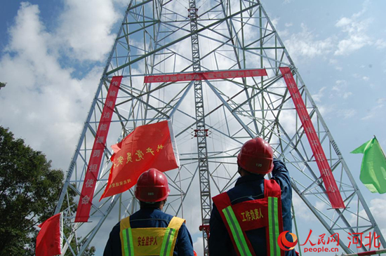 河北送變電公司黨員示范崗加強(qiáng)現(xiàn)場(chǎng)管控。 李秉翼攝
