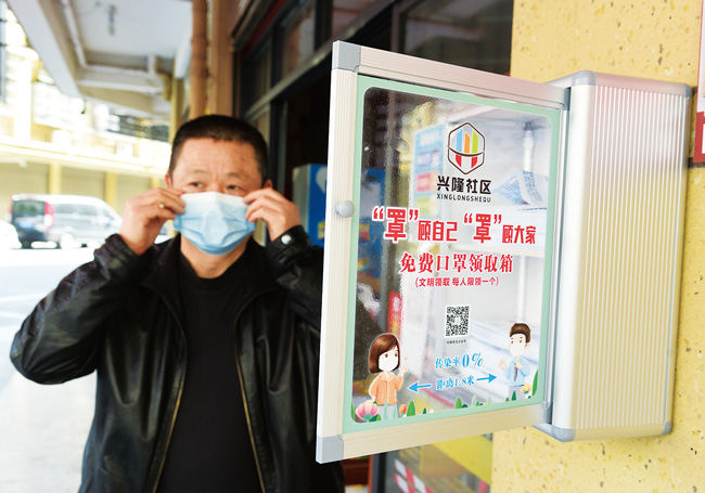 近日,浙江義烏福田街道興隆社區(qū)在轄區(qū)內(nèi)主干道出入口、人員密集的超市、藥店、快遞點(diǎn)等地設(shè)置免費(fèi)口罩領(lǐng)取箱,箱里放滿了口罩,箱體上寫(xiě)著“文明領(lǐng)取,每人限領(lǐng)一個(gè)”?;顒?dòng)開(kāi)展半個(gè)月以來(lái),6個(gè)免費(fèi)口罩領(lǐng)取箱共送出近6000個(gè)口罩。興隆社區(qū)黨委書(shū)記黃俊鋼表示,除了設(shè)立免費(fèi)口罩領(lǐng)取箱,社區(qū)還大力開(kāi)展佩戴口罩勸導(dǎo)活動(dòng)。(錢旭升)