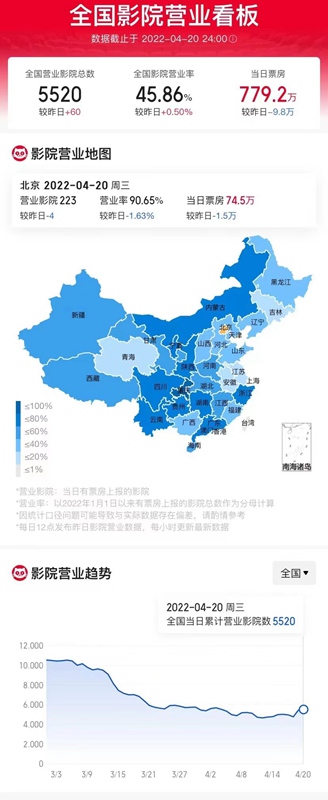 4月20日全國影院營業(yè)數(shù)據(jù)。網(wǎng)絡(luò)截圖
