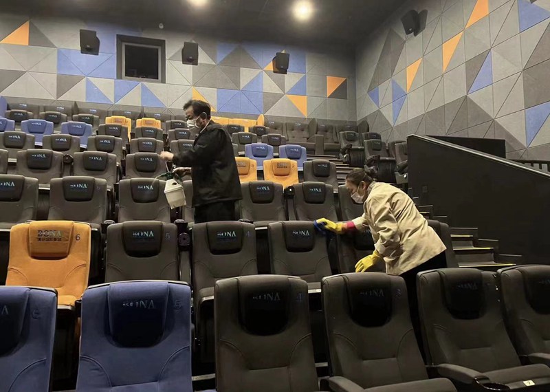電影院的工作人員正在對影廳進(jìn)行消殺。受訪者供圖