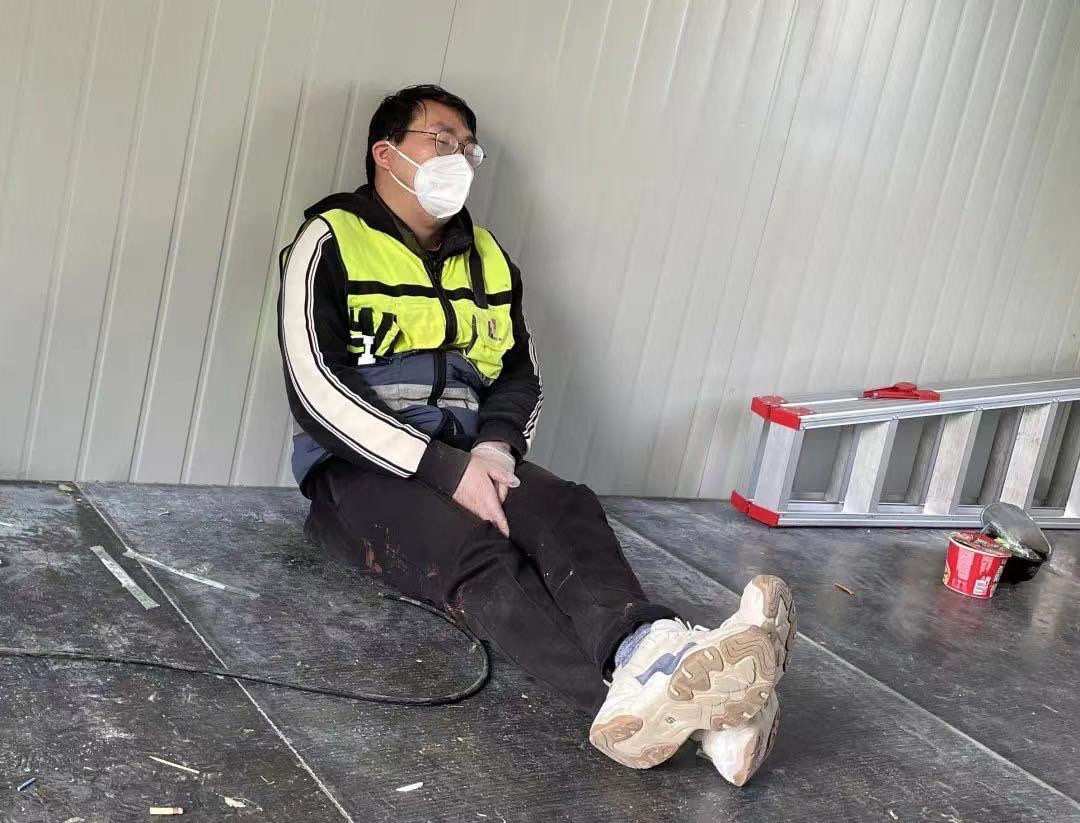 連續(xù)作戰(zhàn)的工作人員席地休息