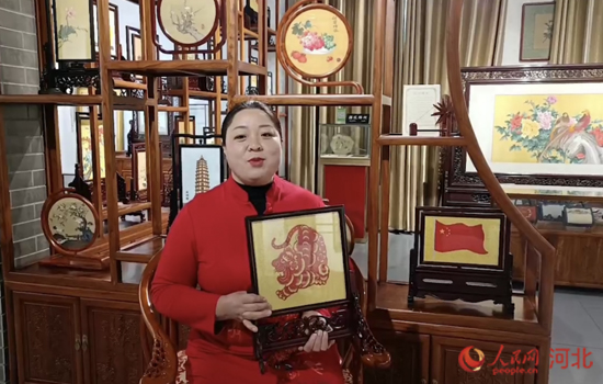 國家級非物質文化遺產(chǎn)項目省級傳承人程苗欣制作的虎虎生威緙絲。 人民網(wǎng) 周博攝