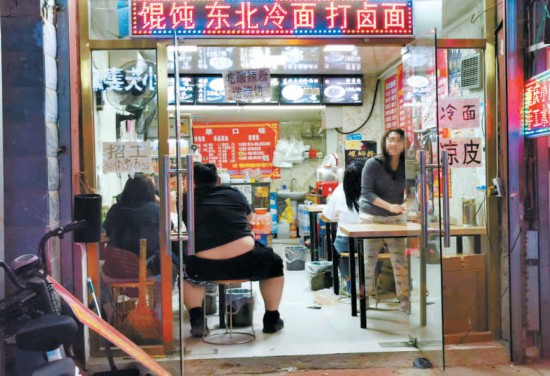 打開大眾點(diǎn)評(píng),先選一些口碑爆棚的小吃打包,然后帶到周邊餐館里再點(diǎn)些菜,正餐、小吃都不耽誤,這是不少年輕人逛街的習(xí)慣。記者探訪發(fā)現(xiàn),目前在沿街大多數(shù)餐館不提供堂食服務(wù)的情況下,網(wǎng)紅小吃窗口前的顧客無處可去,久久不散。很多人在小吃窗口前“就地消化”,烤串、蛋糕,這些小吃食用方便,有沒有桌子、餐具都無所謂,在小吃窗口前找個(gè)椅子坐下,形成路邊大排檔,沒有桌子間隔著,用餐人員挨得更近了。