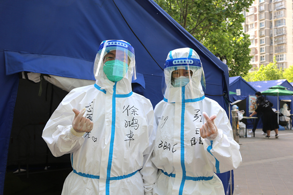 “我的兩個孩子都在鴻博家園1期B區(qū),屬于管控區(qū),由姥姥姥爺照看。每天做核酸、送生活用品,他們的生活都是由大白照料,所以我們倆心里很踏實,也很感激。因為我們兩個是黨員,之前疫情的時候就想幫社區(qū)做點什么,但奈何因為工作和孩子的原因一直沒有時間。現(xiàn)在五一假期終于能有時間來社區(qū)盡些微薄之力,在公布招募志愿者消息后,我們倆第一時間就報名了?!睆埦дf。