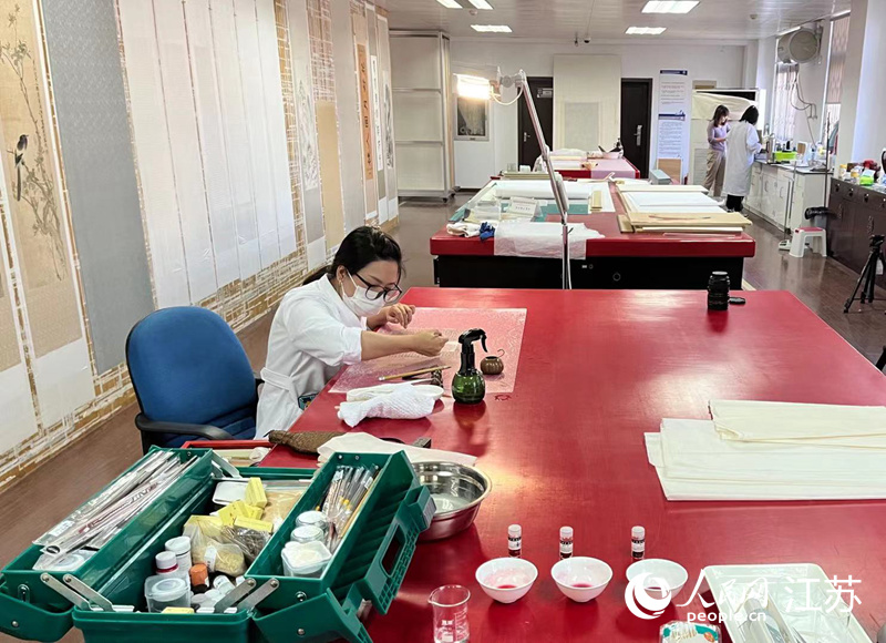 現(xiàn)在,越來越多的年輕人加入到這份彰顯情懷和定力的工作中來。陳思燚說,“我們就是‘書畫醫(yī)生’,修復(fù)書畫的過程,就是給文物看病治療的過程?!蹦壳埃谀喜氖聲嬓迯?fù)工作的團(tuán)隊(duì)已有9人,主要以80后、90后為主力。