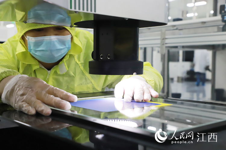 近日,在江西宜黃縣工業(yè)園區(qū)中弘晶能科技有限公司智能化生產(chǎn)車間內(nèi),工人正在操作設備趕制訂單。尹文兵攝