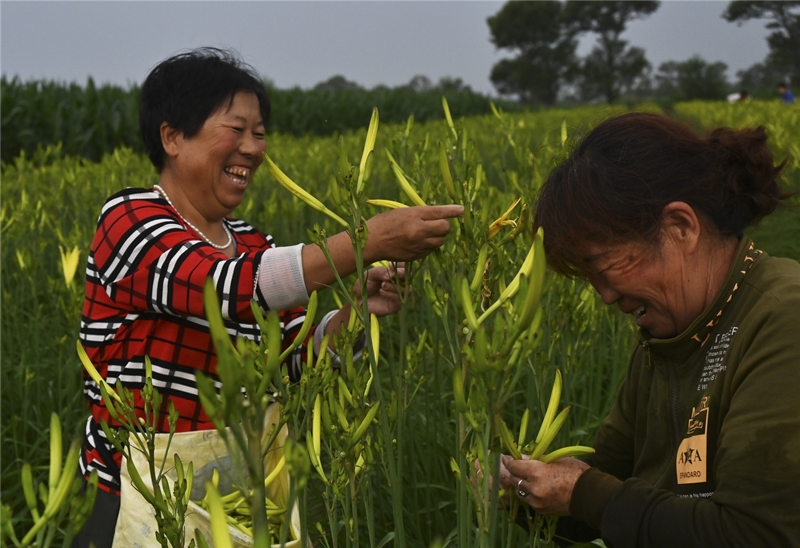 61歲的唐萬是唐家堡村第一批黃花菜種植戶。2020年,他將家中的30畝土地流轉(zhuǎn)給當(dāng)?shù)睾献魃绶N植黃花?!耙郧白约悍N地的時(shí)候,一年下來收入有時(shí)還不到2000元。沒想到,30畝黃花地改變了我們一家的生活,現(xiàn)在每年都能有3萬多元的收入,好的時(shí)候甚至更多?!闭f起黃花帶來的好生活,唐萬臉上流露出喜悅。