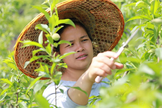 “今年是一個豐收年,我們正在給果園松土和縮果。等下個月底成熟了,歡迎大家來吃甜蜜蜜的黃桃?!睎|安縣大廟口樂福村,成片的黃桃進入掛果期,唐云云站在“云端”,提前向網(wǎng)友發(fā)出豐收的邀請。