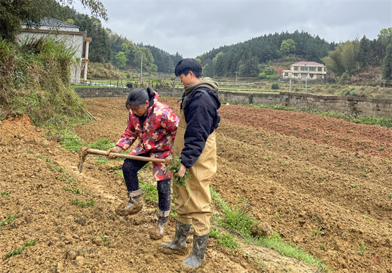 曾曉瑤正幫村民干農(nóng)活。受訪者供圖