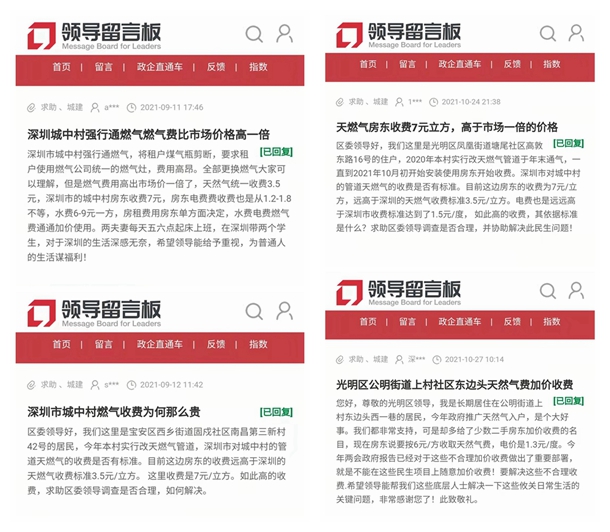 近年來,隨著深圳全力推進城中村管道燃氣改造,“二房東”亂收燃氣費的現(xiàn)象層出不窮。多位深圳網(wǎng)友曾在人民網(wǎng)“領導留言板”留言,反映房東收取的燃氣費遠高于《深圳市燃氣價格制度標準》?!罢茝V天然氣入戶,是個大好事,我們都非常支持,可是卻給了少數(shù)二手房東加價收費的名目?!币晃痪W(wǎng)友說。