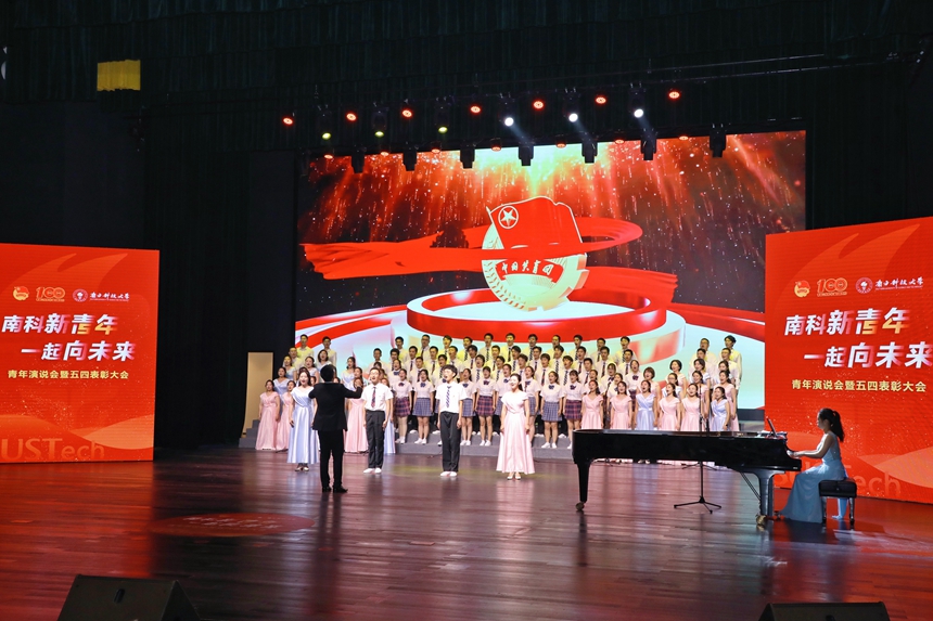 “南科新青年·一起向未來”青年演說會(huì)現(xiàn)場合唱。南科大供圖