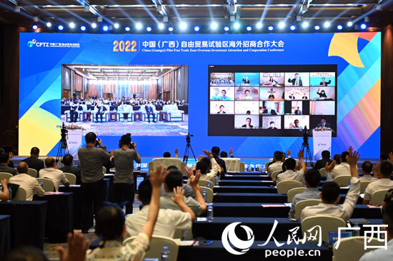 人民網(wǎng)南寧5月27日電 (記者彭遠(yuǎn)賀)5月27日下午,2022中國(guó)(廣西)自由貿(mào)易試驗(yàn)區(qū)海外招商合作大會(huì)在南寧舉行。大會(huì)公布了首批五位“廣西自貿(mào)招商大使”名單并頒發(fā)聘任證書(shū)。