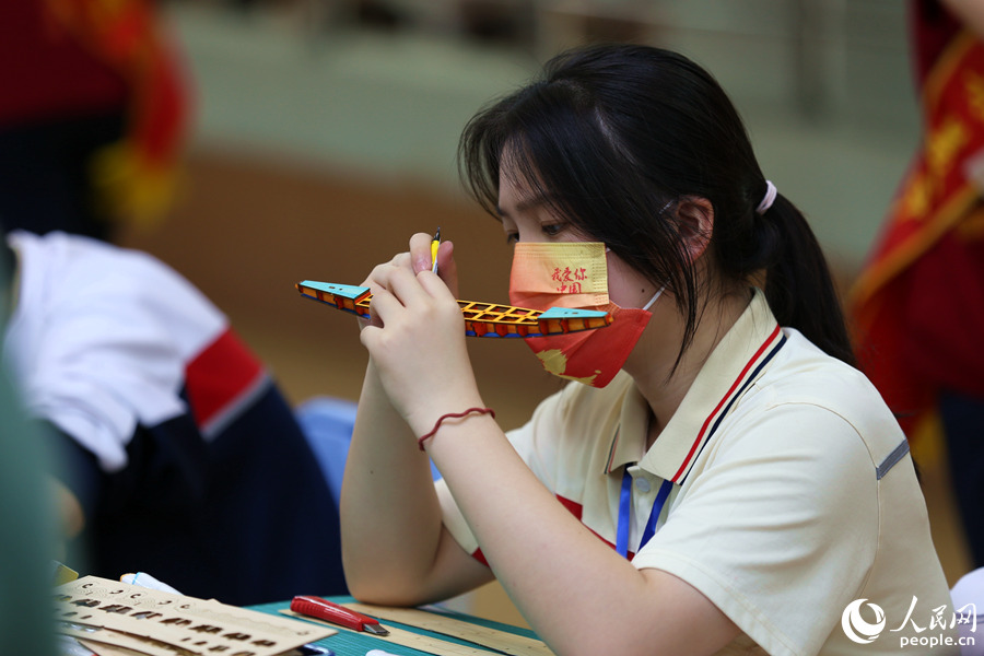 活動(dòng)現(xiàn)場(chǎng),選手們列隊(duì)進(jìn)入各自賽場(chǎng),用畫(huà)筆在龍舟模型素材板上畫(huà)出各式圖案,再將一個(gè)個(gè)零部件手工拼接,組裝成一條條獨(dú)具特色的“小龍舟”,船體或是金銀鱗甲,或是祥云波浪,色彩斑斕,風(fēng)格不一。