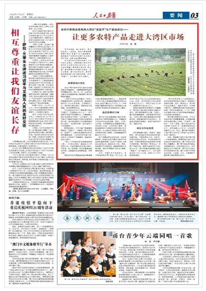 “貴州實(shí)現(xiàn)貧困人口全部脫貧后,如何實(shí)現(xiàn)有效銜接鄉(xiāng)村振興一直是我們考慮的問題,其中‘黔貨出山’成為我們關(guān)注的重點(diǎn)?!睖馗f平表示,已將貴州佛手瓜、獼猴桃等農(nóng)副產(chǎn)品樣品進(jìn)行檢測(cè),均符合供港標(biāo)準(zhǔn)。下一步,將重點(diǎn)對(duì)接其中部分產(chǎn)品的種植養(yǎng)殖基地,以實(shí)現(xiàn)每日供港需求。