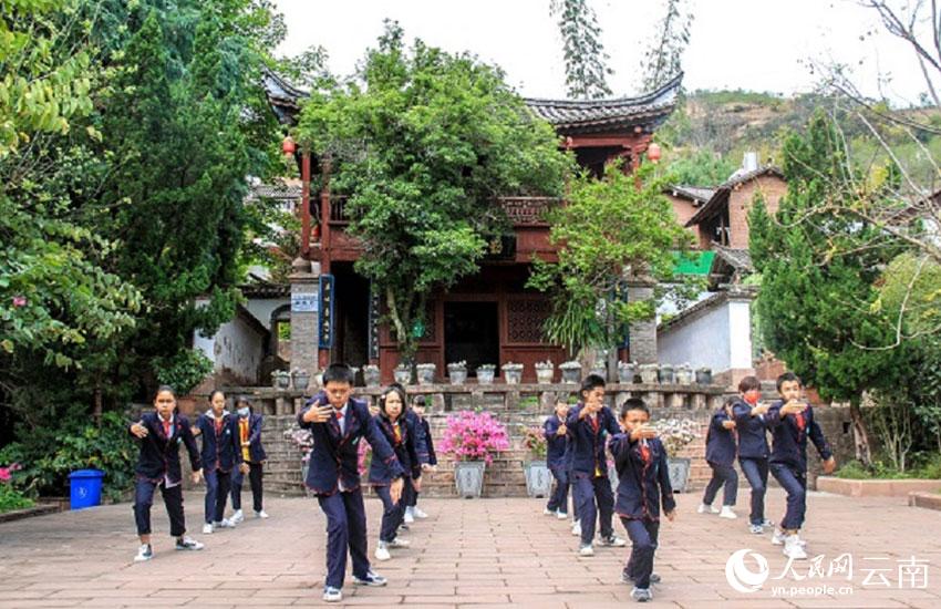 在云南省大理州云龍縣寶豐鄉(xiāng),穿過(guò)一條青石鋪就的古樸街道,走進(jìn)青瓦白墻的寶豐中心完全小學(xué)校門(mén),便聽(tīng)見(jiàn)一聲聲鏗鏘有力的鼓點(diǎn)。