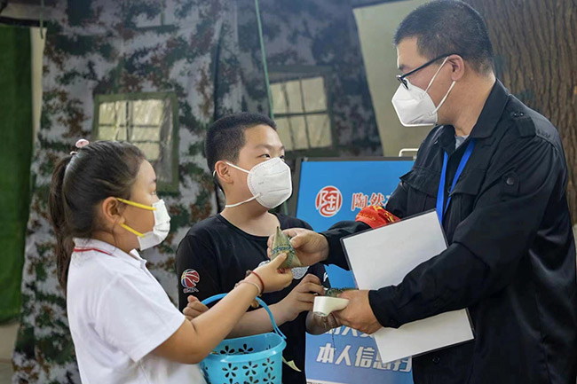 “六德少年”的魅力遠(yuǎn)不止這些。在前不久陶然亭街道兒童中心開展的一次云端課堂上,一位百歲“太奶奶”顫抖著手教重孫女包粽子。幾天后,這些粽子便出現(xiàn)在“疫”線工作者的手中。“因?yàn)楹芏圄兆泳€都纏的不牢固,寶貝送的小心翼翼,后來我們才知道這粽子來之不易?!币晃弧耙摺本€工作者接過粽子后,豎起了大拇指。