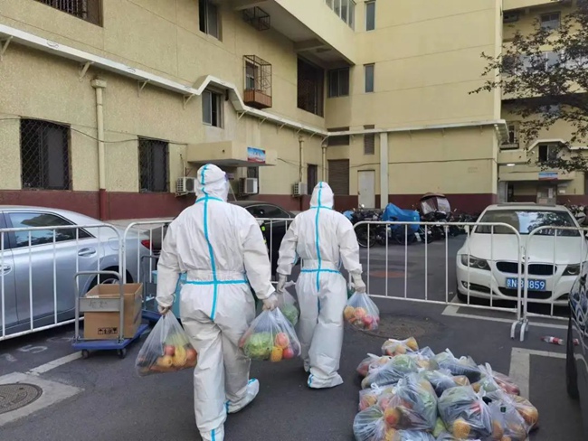 海淀區(qū)85000份“愛心蔬菜包”送進封控管控區(qū)。