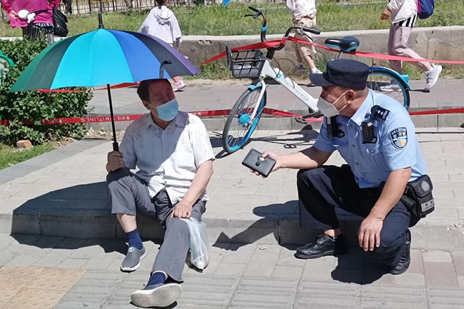 5月25日是朝陽區(qū)全域核酸篩查日。上午10點(diǎn),常營派出所民警馬占富正值守在萬象新天核酸檢測點(diǎn),突然聽到不遠(yuǎn)處群眾的呼救聲:“有人摔倒了!”