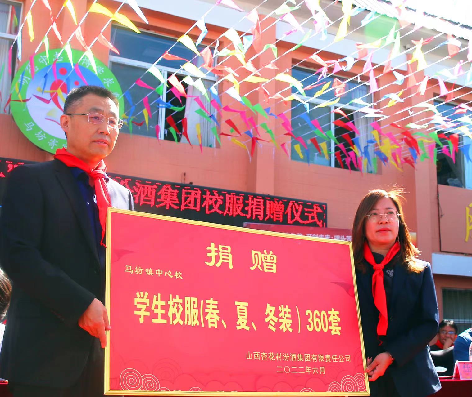 6月1日,呂梁市方山縣馬坊鎮(zhèn)中心校舉行慶“六一”活動(dòng)暨汾酒集團(tuán)校服捐贈(zèng)儀式。當(dāng)天,汾酒集團(tuán)為該校捐贈(zèng)了價(jià)值11.6萬(wàn)元的夏、秋、冬校服360套和360本新華字典。