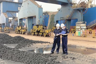 海關(guān)關(guān)員對(duì)焦炭進(jìn)行現(xiàn)場(chǎng)監(jiān)管。天津海關(guān)供圖