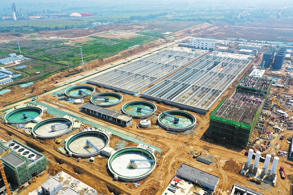 6月27日,航拍下的山西綜改示范區(qū)山西合成生物產(chǎn)業(yè)生態(tài)園污水處理及再利用項(xiàng)目已現(xiàn)雛形。該項(xiàng)目是目前全國投資規(guī)模最大、處理標(biāo)準(zhǔn)最高、分鹽量最大的工業(yè)園區(qū)污水處理項(xiàng)目,總規(guī)劃用地約800畝,總投資21.38億元,建成后日污水處理量最高達(dá)14.4萬噸。(記者孫榮祥攝)