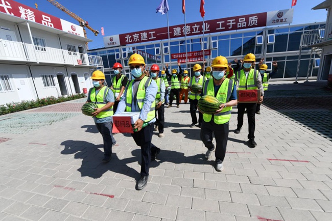 北京市已進入盛夏高溫時節(jié),防暑降溫工作直接關系到勞動者身體健康和企業(yè)生產(chǎn)安全。7月7日,由北京市總工會主辦的“最美勞動者 微笑帶回家”系列活動暨清涼送給首都建設者活動,在北京建工路橋集團通州數(shù)據(jù)中心項目舉行,北京建工路橋集團黨委書記王曉輝代表公司黨委、工會對建設者進行慰問,向奮戰(zhàn)在施工一線建設者們送去清涼及防疫物資和真摯問候。