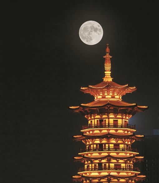 7月13日晚,長沙洋湖國家濕地公園,“超級月亮”與白鷺塔唯美同框。繼6月14日之后,“超級月亮”當天再次現(xiàn)身,這輪“超級月亮”是今年諸多滿月當中最大的一個。記者 辜鵬博 攝
