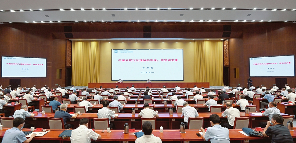 報(bào)告會(huì)上,黃群慧以《中國式現(xiàn)代化道路的形成、特征與前景》為題,圍繞中國式現(xiàn)代化道路的形成、特質(zhì)與理論意義,習(xí)近平經(jīng)濟(jì)思想與中國經(jīng)濟(jì)現(xiàn)代化的前景,新發(fā)展階段的現(xiàn)代化重大戰(zhàn)略任務(wù)等進(jìn)行了深入講解。報(bào)告既有思想理論高度,又有實(shí)踐指導(dǎo)深度,對全方位推動(dòng)高質(zhì)量發(fā)展、走好山西現(xiàn)代化發(fā)展之路很有啟迪意義。