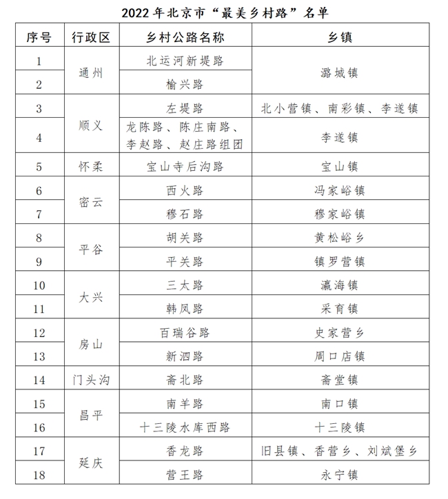 北京評選出18條“最美鄉(xiāng)村路” 到2025年將創(chuàng)建1500公里美麗鄉(xiāng)村路