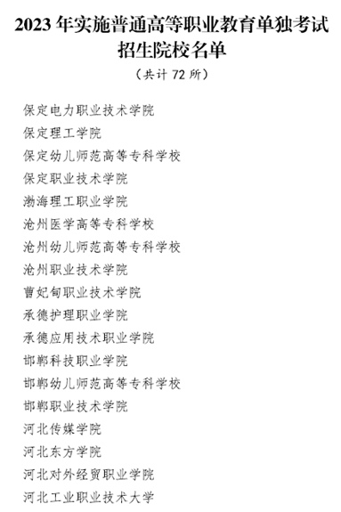 2023年河北72所高職院校實施單獨考試招生
